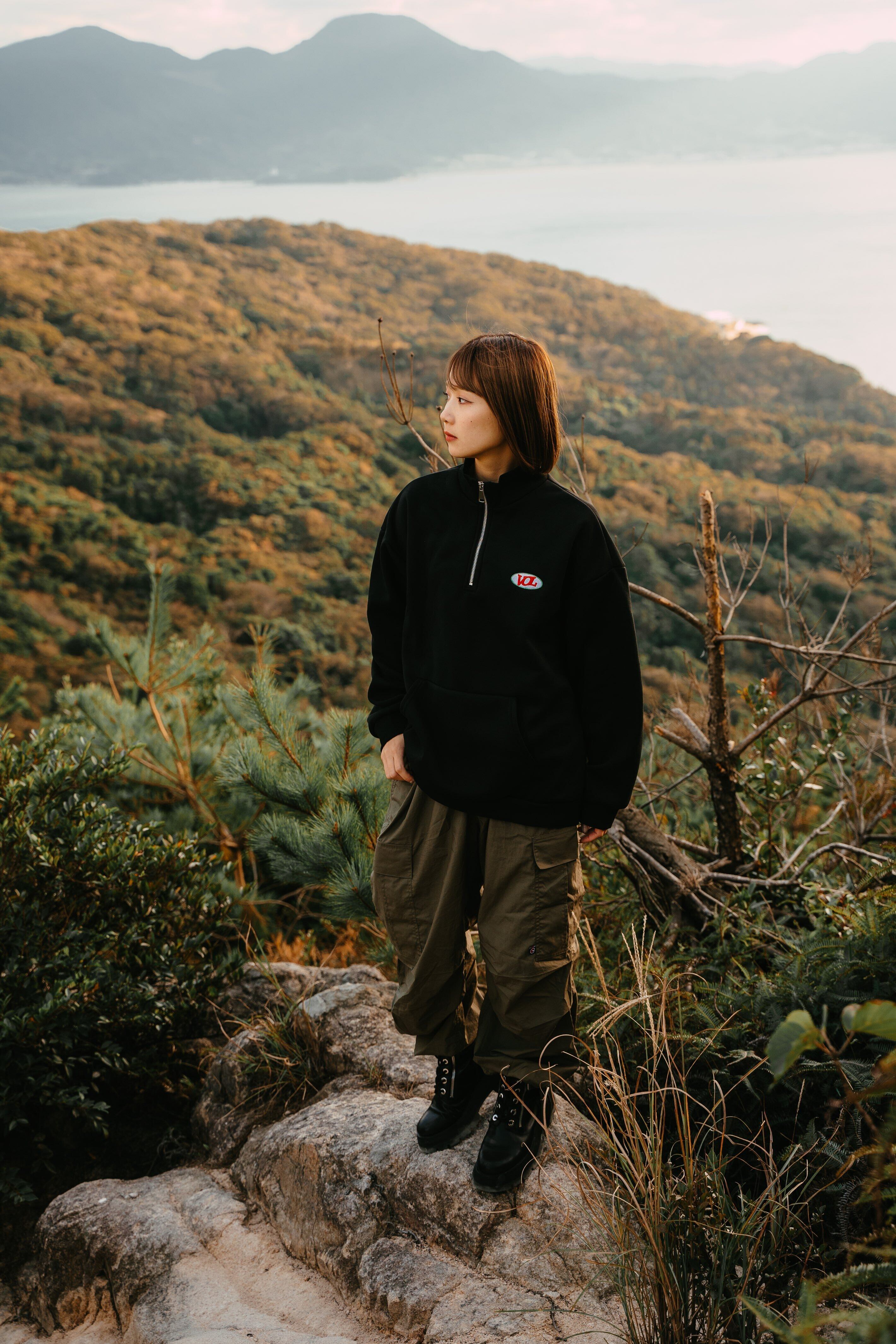 VOL.ロゴワンポイントで個性を引き上げる ハーフジップスウェット (前ポケットあり) 裏起毛で肌触りも良くアウターの下にも着用可能 春先まで長く使いまわせます。 COLOR / BLACK SIZE 【 M 】 着丈 66cm 身幅 62cm 袖丈 52cm 肩幅 61cm 【 L 】 着丈 68cm 身幅 65cm 袖丈 53cm 肩幅 63cm 素材 ポリエステル 95% スパンデックス 5%