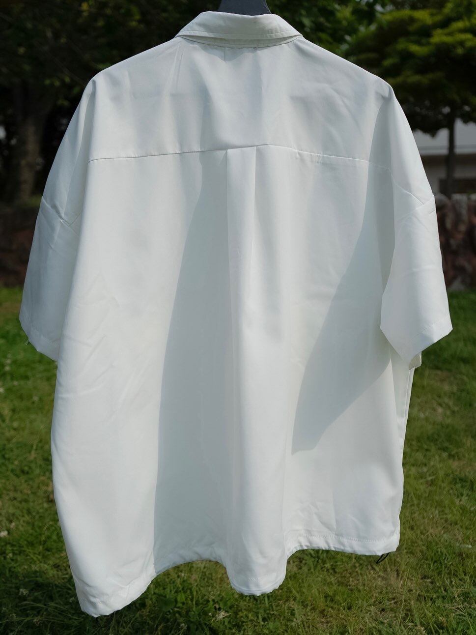 ユニセックスで着用可能な ワイドシルエット仕様のボックスシャツ 裾にドローストリング付きでしぼって お好きなシルエットをお楽しみ頂けます。 Size L 着丈 72cm 身幅 72cm 肩幅 70cm 袖丈 17cm 裾幅 72cm ドローストリング付き 袖口幅 24cm 素材 ポリエステル、ナイロン ※素材の特性や生産の過程によって、表記サイズより誤差が生じます。あらかじめご了承下さい。